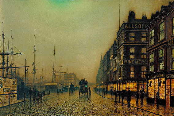 "Liverpool Quay by Moonlight in 1887," the year Hankinson moved his family from Freeport Nova Scotia to Liverpool, as painted by Atkinson Grimshaw, 1836-1893. (Credit: Tate Britain).