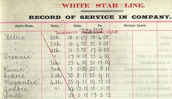 Boxhall's White Star Line records prior to joining the Titanic in 1912.