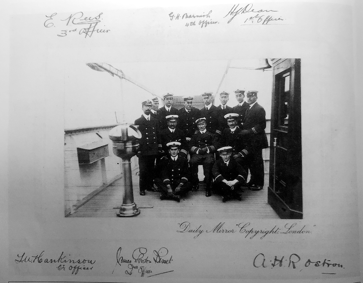 Autographed photograph of Carpathia's officers given to Fourth Officer Boxhall. Credit: Titanic Voices/Ford Collection. (Click image to enlarge)
