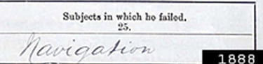 On 14 February 1888 Smith decided to apply for his Extra Master’s certification, a voluntary certification but the highest the Board of Trade offered and hence the most difficult. It is perhaps not surprising that Smith failed the navigation section, the first time he had ever failed an exam. The fee was 2 pounds, half of which was returned upon failure to pass, so Smith applied again three days later and on the 20th of February 1888 finally passed the test.