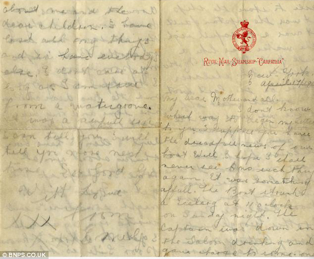 In 2012 a previously unseen letter was unearthed in which survivor Emily Richards claimed Captain Smith was drinking in the saloon bar before the collision. The 24 year old second class passenger, travelling with her two sons, while her brother George died in the diaster, made the allegation in a letter she wrote home to her mother-in-law, Mrs Richards, from Penzance, Cornwall, while she was board the Carpathia. The letter reads: