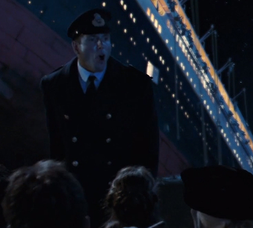 Boxhall is inaccurately portrayed as going down with the ship (due to his character being merged with that of Sixth Officer James Moody.)