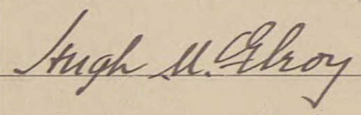 Hugh McElroy (also "M'Elroy") was born in Liverpool, England (father of Irish heritage, his mother Scottish). Baptised a Roman Catholic, he was seemingly destined to become a priest, however he dropped out of his studies and instead went to sea as a Purser for the Allan Line. Finding a role that matched his character, he moved to the White Star Line and soon after received a medal for his efforts during the Boer War. He was described as "a splendid specimen of manhood, being about 6 feet 2 inches in height and was a grand character and beloved by all." He was "a first-class raconteur... big, jolly, courteous, human to the last inch ...the ideal man for the position he held.” His duties involved everything from parrot-minding and protecting precious jewelry, to dealing with fires and suicides and arranging a last minute wedding for a runaway couple. He became so popular, passengers were known to time their voyages so as to sail on the same ship as him, and were honoured to dine at his table.